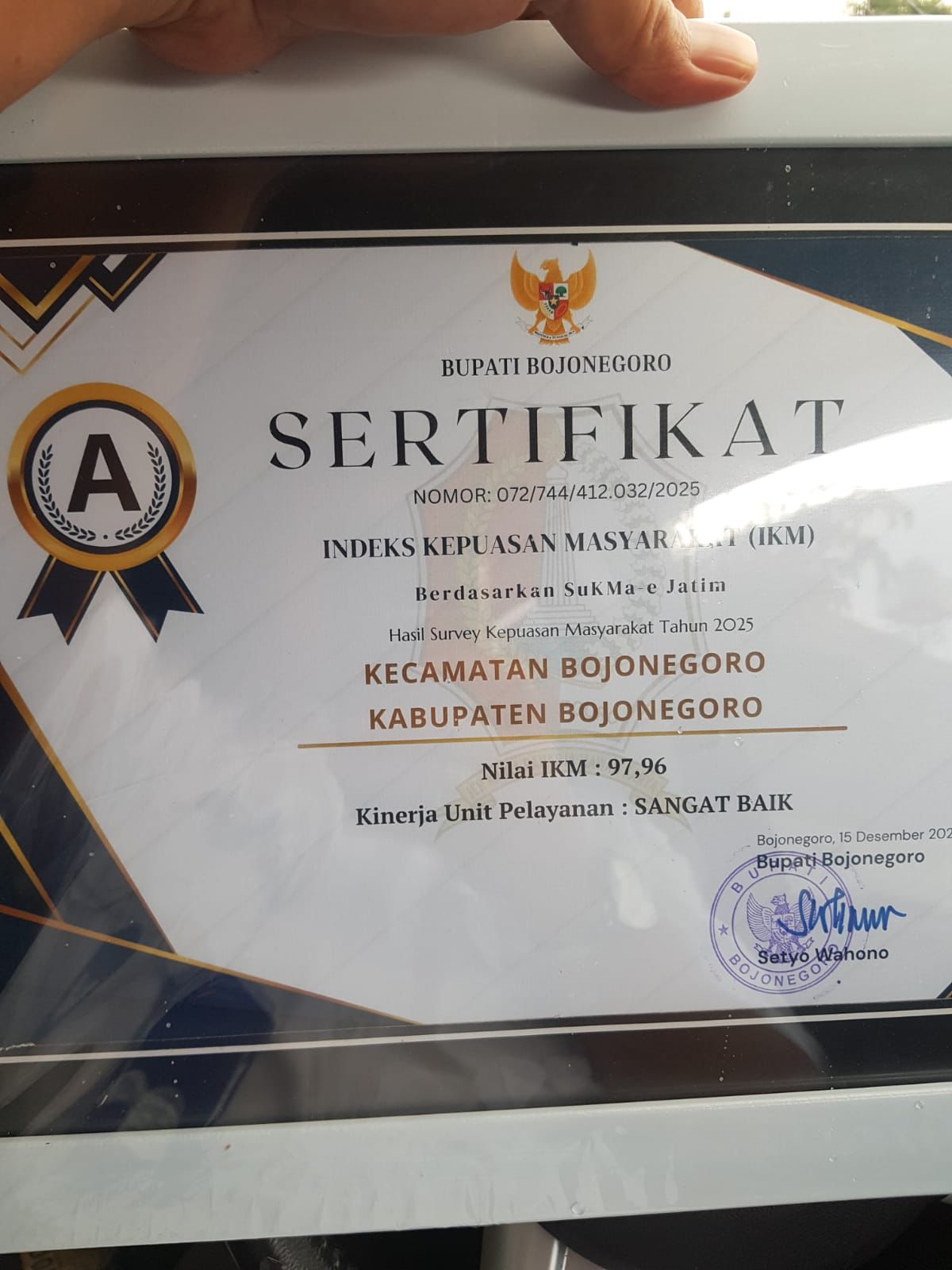 PENYERAHAN SERTIFIKAT INDEKS KEPUASAN MASYARAKAT